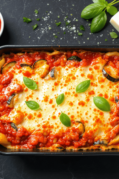 Layered with pasta, ratatouille, cheese and sliced aubergine this healthier take on the Italian favourite ...