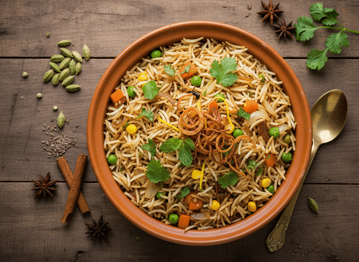 This pilau rice is a really easy side dish that you can whip up in no time with your rice cooker. This version is vegan and reallydelicious. We served this as part of a finger- food medley of samosas and pakora but it could be paired with curries or any other main dish that you want to add a bit more flavour to.
