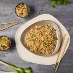 This was an unusual recipe. I tried making it once as written and I didn’t much care for it – the sauce was too thin and I personally thought it was under-spiced. Making it a second time, I used 2 TBSP turmeric and 4-5 garlic cloves, as well as a dash of ground coriander seed and a pinch of cinnamon. I also substituted shredded coconut for the chunks, and added about 1.5 tsp of flour midway through cooking to thicken up the sauce a little. Modified, it was a big hit.